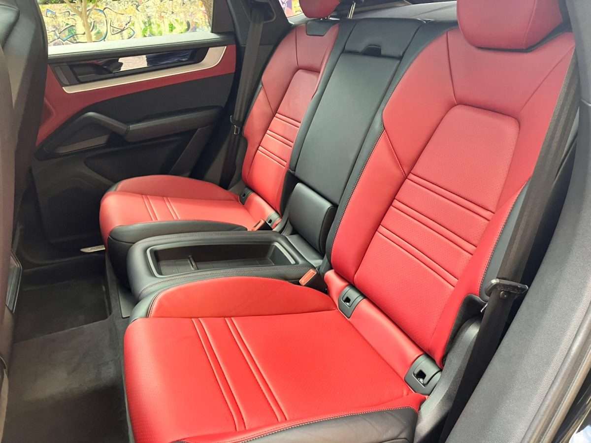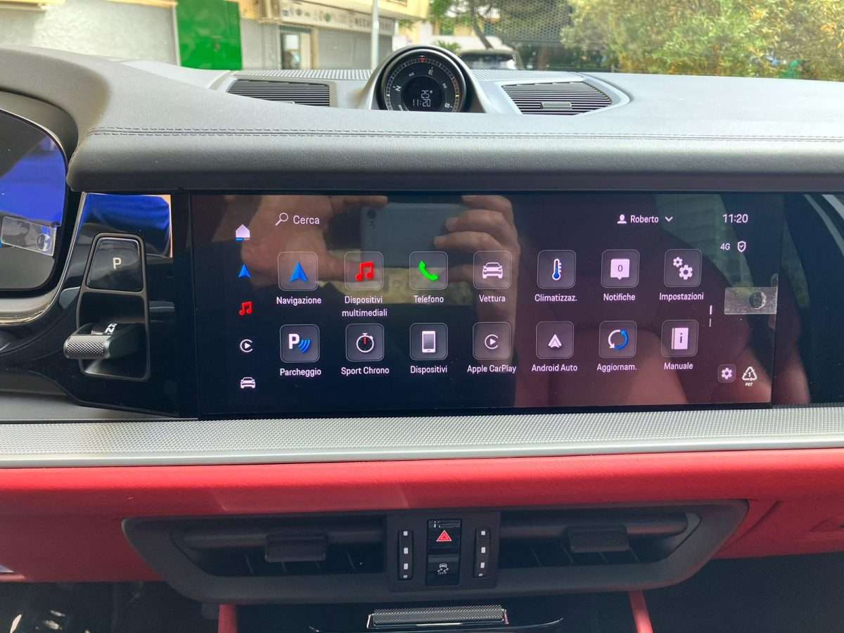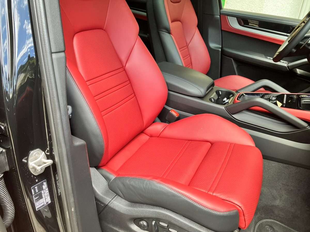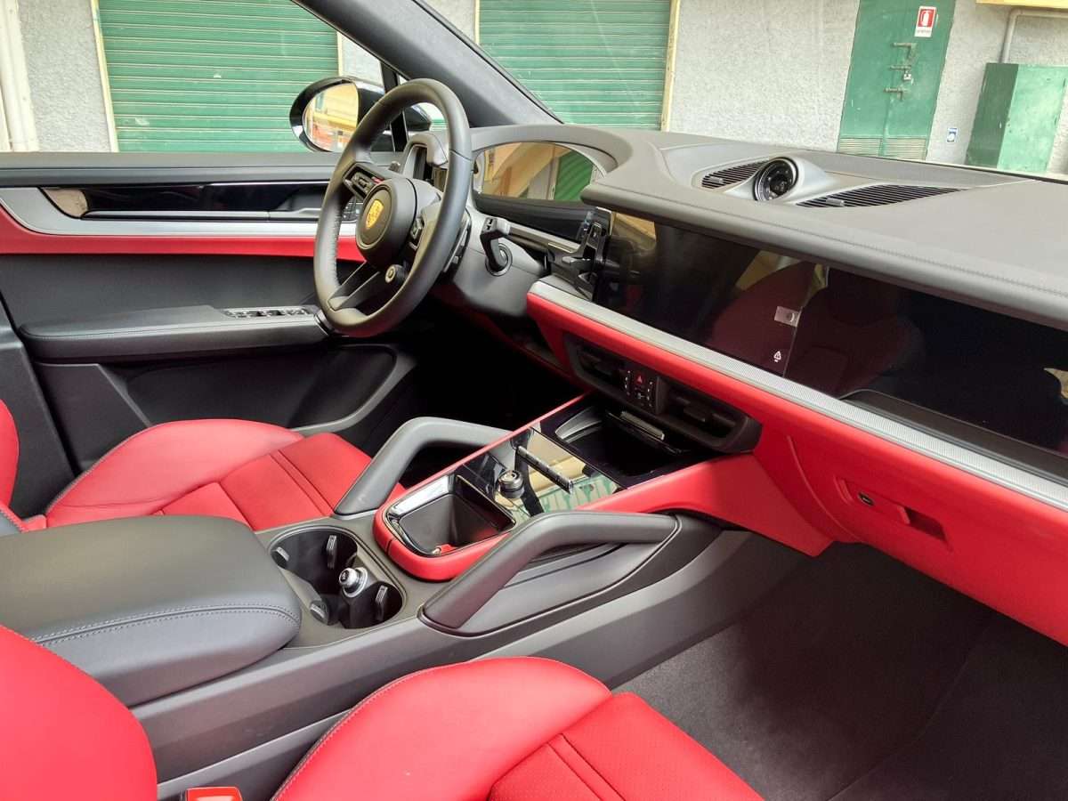 Cinture di sicurezza e design sedili Scudo Porsche sui poggiatesta