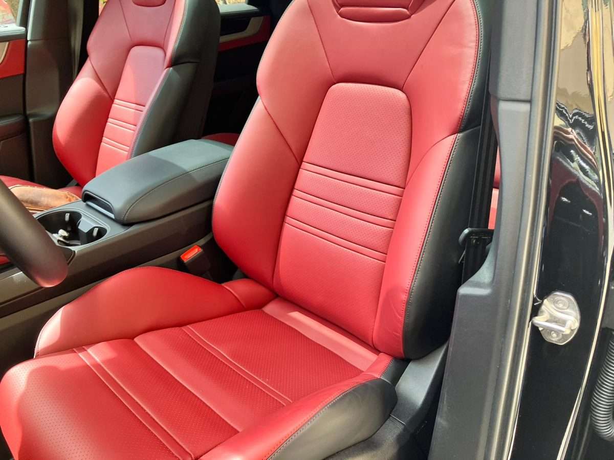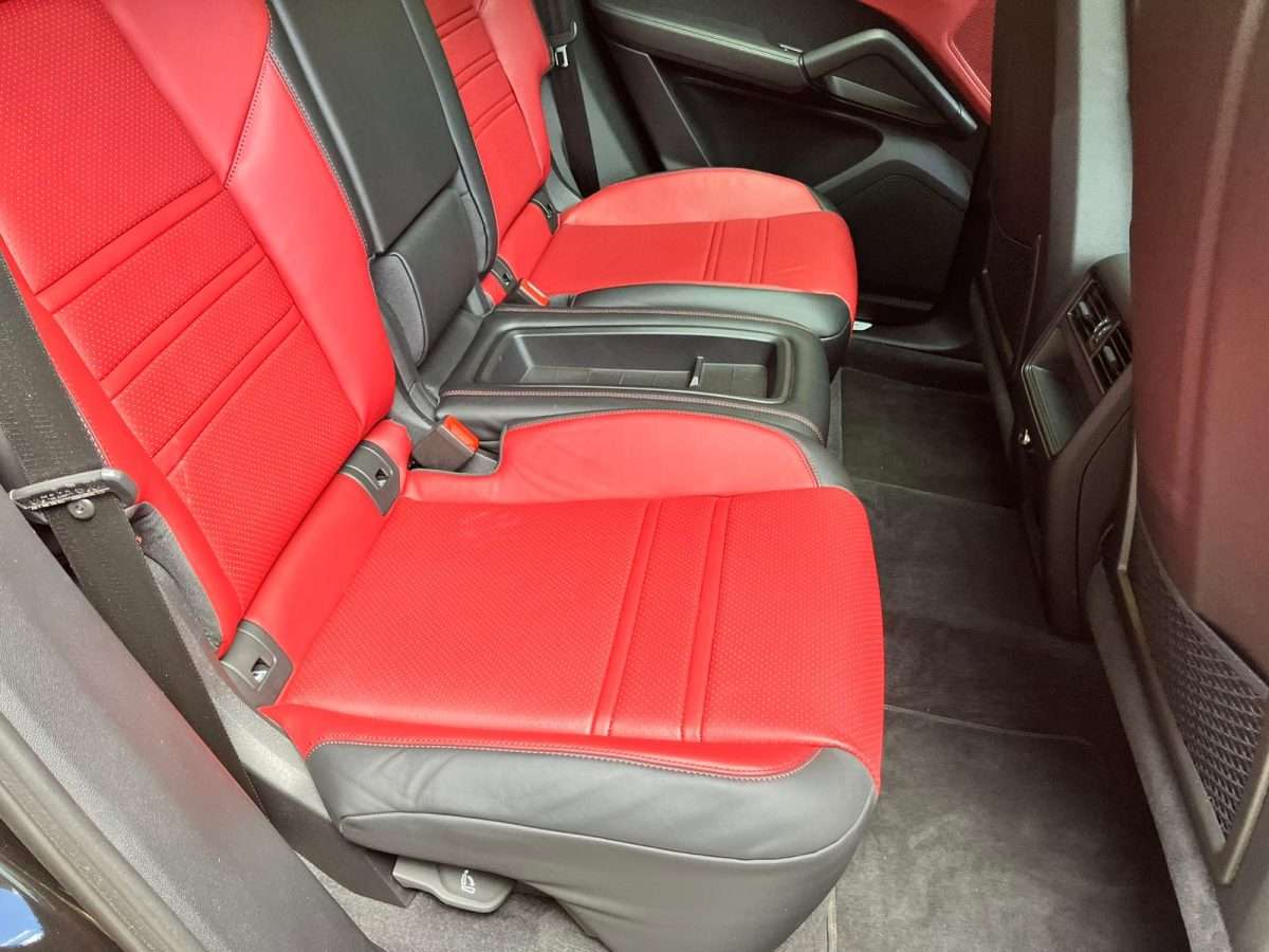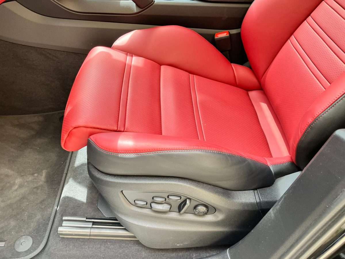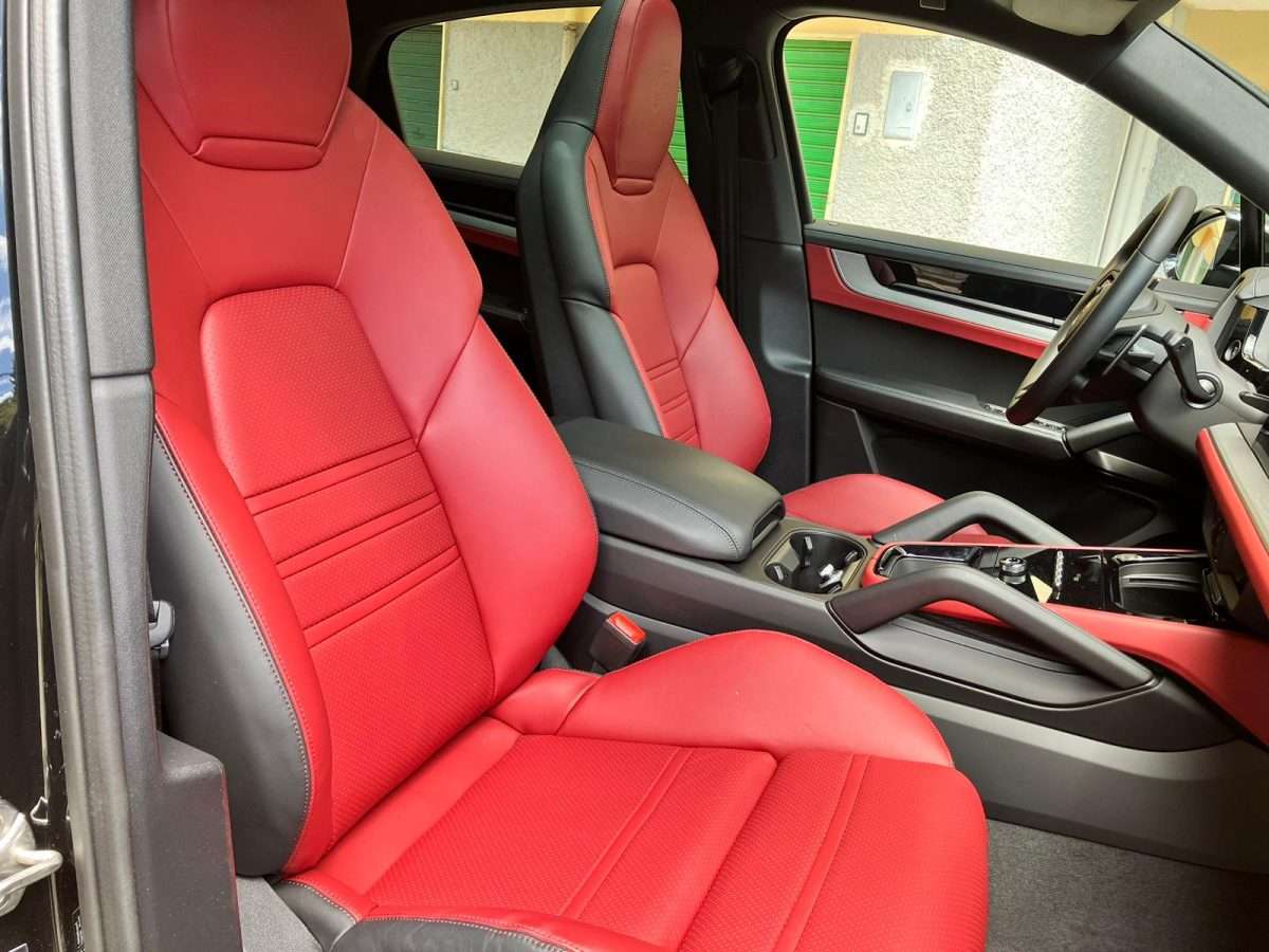 Cinture di sicurezza e design sedili Scudo Porsche sui poggiatesta